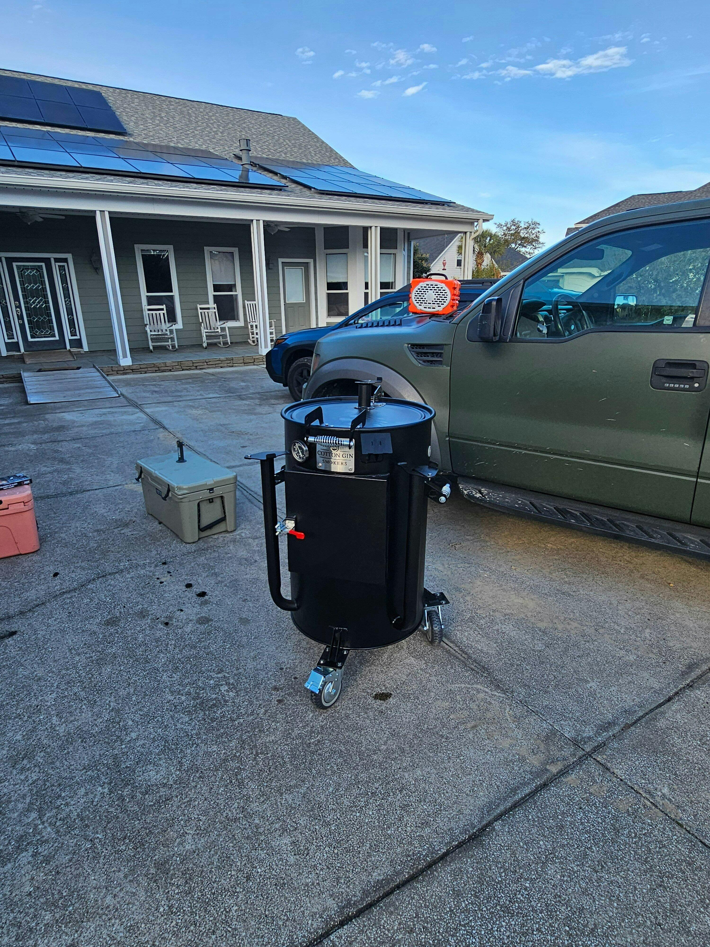 I purchased the cottongin Harvester as my first drum smoker, and 4 years later it hasn't let me down. Beautiful design, and fire management is easy to control! Easy to get to temp and quick recovery time if your temperature goes up or down. Love the door for easy access to your charcoal basket, and water pan if you use one to cook. Since using the Harvester we've landed a bunch of top 10 and top 5 calls in the competition bbq circuit.